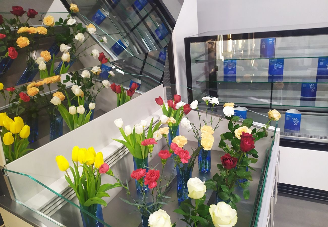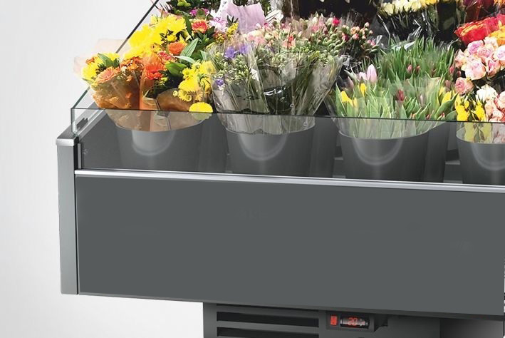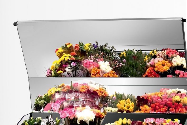 En kyldisk, avsedd för impulsiv shopping, kortvarig exponering och förvaring av blommor. En blomsterdisk är en självbetjäningsdisk som inte kräver närvaro av en säljare. Kaskaddisplay och spegelkåpa säkerställer fullständig exponering av buketter.