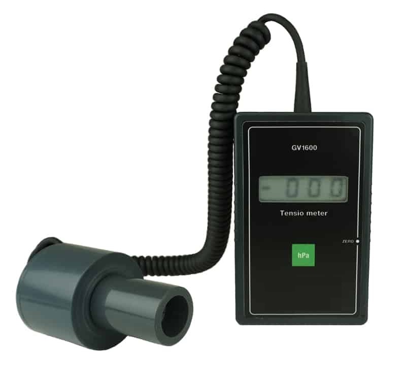 Detta alternativ till konventionella mekaniska vakuummätare, med en unik tryckomvandlare/ digital display, elektronisk bildskärm tar konceptet jordfuktmätning via tensiometri in i elektroniska tidsåldern.