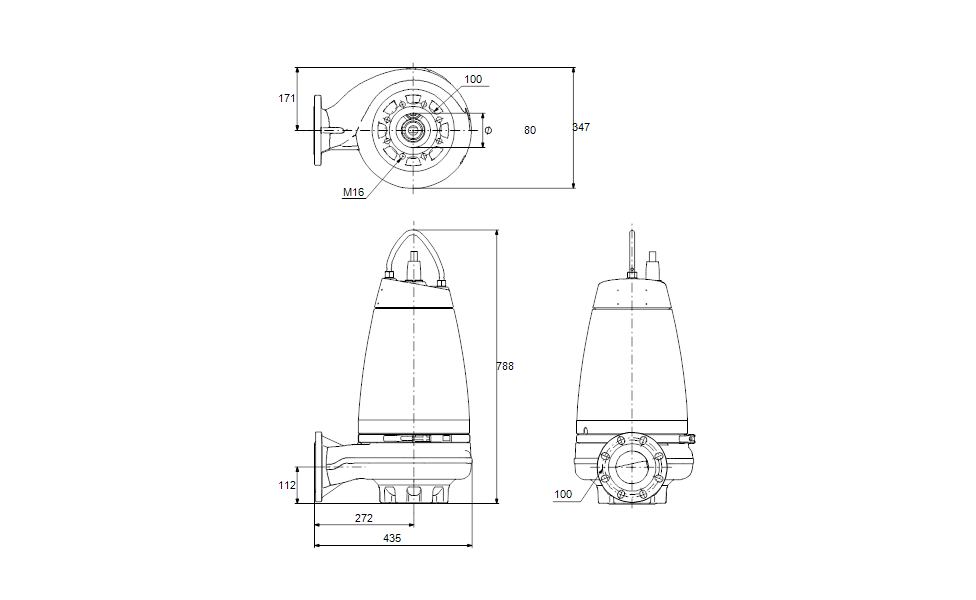 Avloppspump Grundfos SE1.80.100.22.4.50D.B  2,2kW  139m³/h,  11,8m  3x380-415V  50Hz