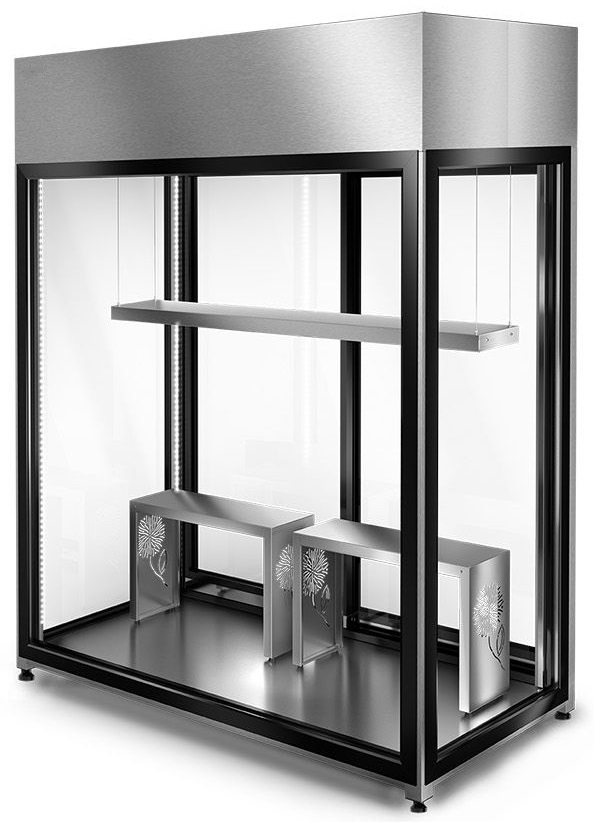 Tack vare det panoramaliknande, härdade glaset kan du njuta av en fantastisk utsikt från alla vinklar. Du ger också dina blommor utrymme, eftersom du kan placera dem i krukor, hänga färdiga arrangemang på tvärstången eller visa upp dem på extra hängande hyllor.