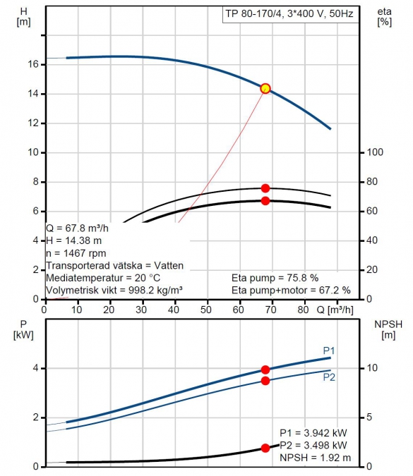 Cirkulationspump Grundfos TP 80-170/4, 4kW 67,8m³/h 14,38m 3x400V 50Hz