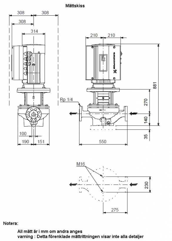 • Röranslutningen sker med PN 16 DIN-flänsar (EN 1092-2 och ISO 7005-2).
