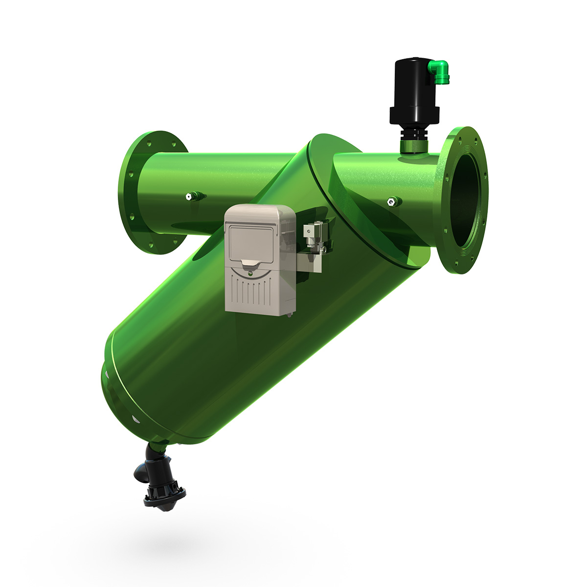Den F3400 Filter skapar en centrifugal rörelse av vatten för att hålla skärmen ren under bevattningsprocessen.