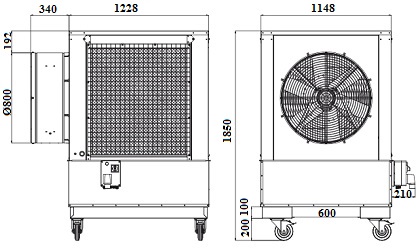 Fläktenheten är tillverkad i stål med zink / aluminium / magnesiumbeläggning för maximal korrosionsbeständighet. Kyl-lamellerna kan enkelt demonteras vid underhåll och rengöring. Vattentanken har en kapacitet på 335 liter som ger lång drift tid.