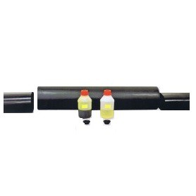 Anslutningsenhet, värmekrympning. PEX-rör isolerade med polyuretanskum. Yttermantel av PEL. Klassade för 90° vattentemperatur.