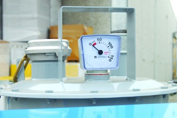 Tank och uppsamlingskar är lackerade med ett skikt av rostskydd och grå emalj.