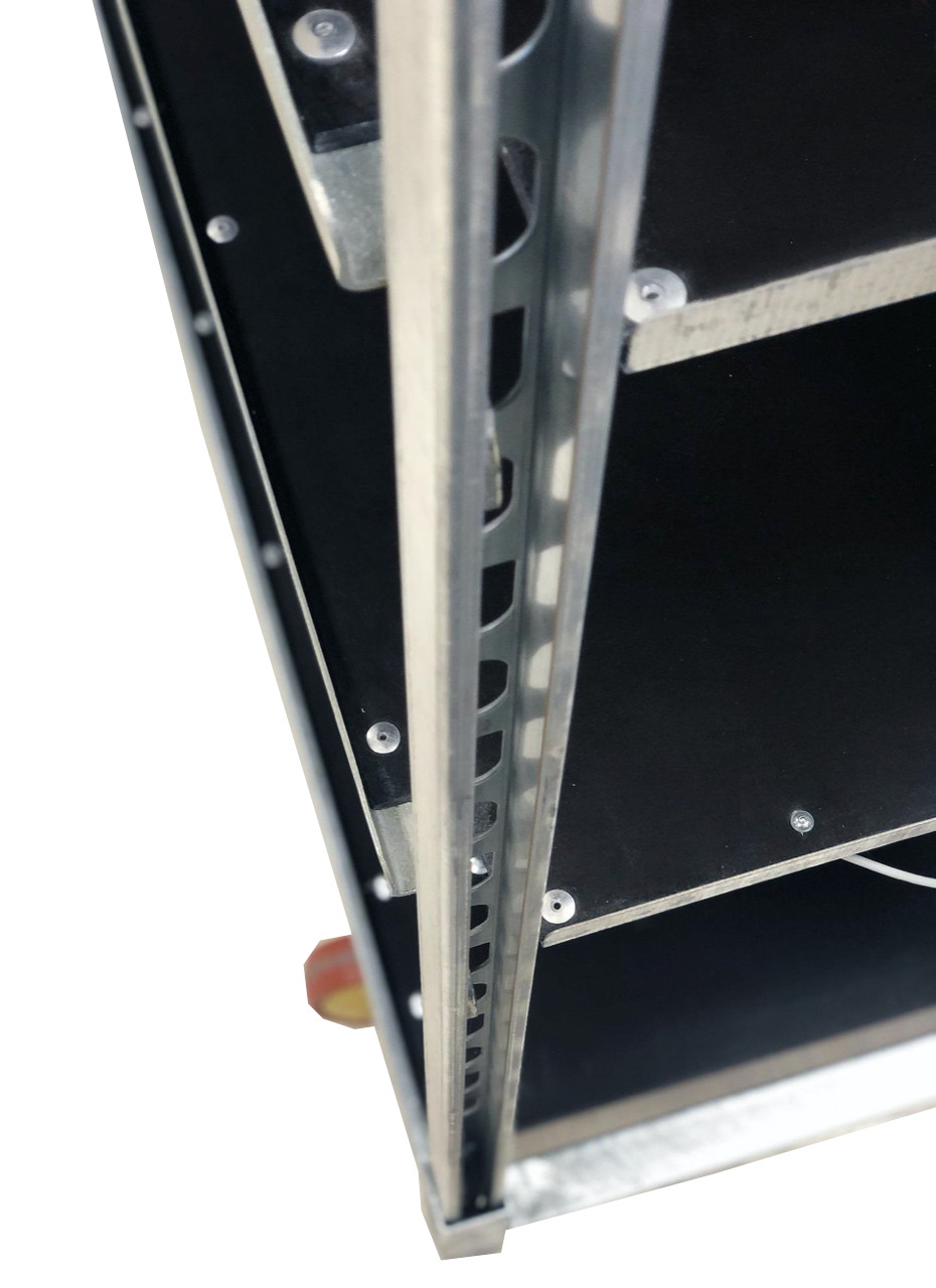 • Hylla av 6,5mm plywoodplatta,  varmgalvad 2mm kant.  Maxlast 50kg/hylla